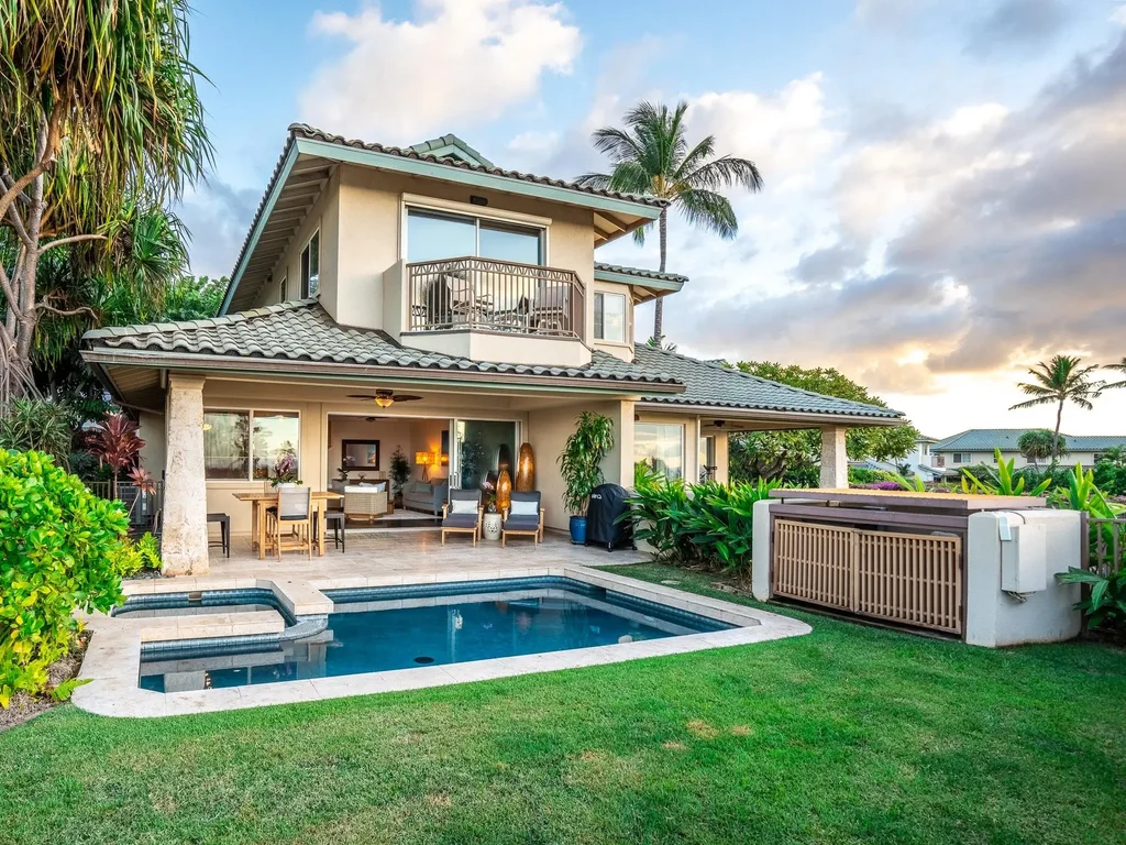 One of the best front row locations in the exclusive Kai Malu neighborhood in Wailea, Maui. This home boasts all that you could want with expansive ocean views, your own personal pool and hot tub and a very private setting with your own fenced yard. Year round sunsets included! Kai Malu 27B has been immaculately maintained and comes with upgraded hardwood floors, and an owned PV solar system that is grandfathered into the Net Metering program, which is no longer offered by MECO. This 3 bed, 2.5 bath townhouse lives like a single family home with a large 2 car garage and generous additional storage for all of your toys and beach gear. Enjoy the ease of ownership that a condo provides as the exterior of the property is taken care of by the HOA, including your personal pool and yard maintenance. Kai Malu is a gated community in the heart of Wailea with lush manicured grounds, roaming security and an incredible clubhouse with an infinity edge pool overlooking the best ocean views of any development in Wailea. The community area also features a large hot tub, work out facilities, sauna & steam rooms and a private club house available for gatherings. Close to all the world class beaches, dining, shopping and golf that the Wailea Resort has to offer. This home is being offered with new furnishings and turnkey.