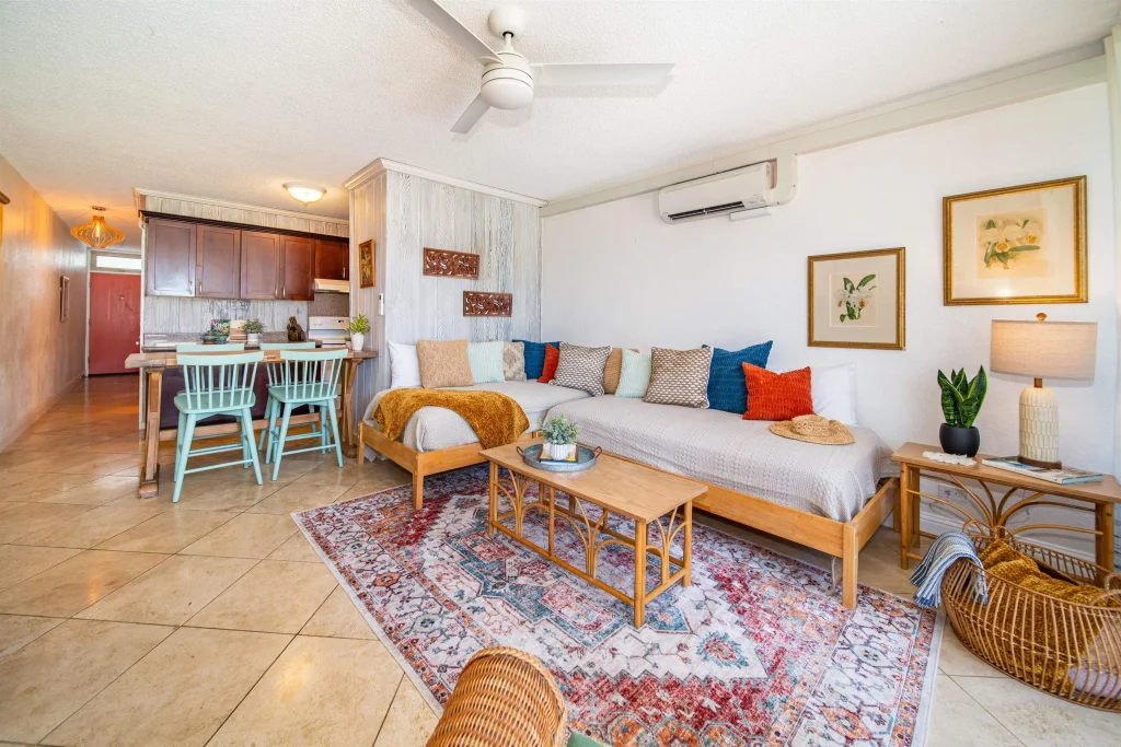 Ku’au Plaza is a unique building on Maui’s North Shore. Constructed in 1974 as a 30-unit apartment building, the only one of its kind in the area. Its North Shore location couldn’t be more perfect; It is conveniently situated within walking distance to Ku’au neighborhood beaches, adjacent to the legendary Mama’s Fish House Restaurant, and Baby Beach. Moreover, it is minutes from the iconic Maui beaches; Ho’okipa, Paia Bay, and Baldwin Beach Park. Paia Town is a short 2-miles away and the nearby Ku’au Market offers a variety of delicious fresh food, locally made snacks, sandwiches, coffee, and groceries. This ground floor unit enjoys a back patio that extends to the large back lawn. The unit has been well cared for. This condo has been a popular vacation rental for friends and family.