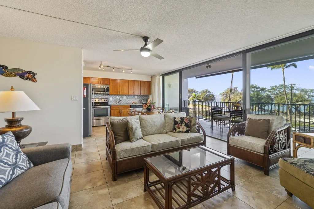 This ocean view 2 bedroom, 2 bathroom, updated and turnkey vacation rental condo sits directly across the street from the ever popular Kamaole III Beach and Park! Enjoy panoramic ocean views from an expansive lanai, featuring brand new sliders, from this 3rd level Maui Parkshore prime location. The unit has a beautifully remodeled kitchen, upgraded bathrooms, new washer/dryer and AC units, and, freshly painted throughout, it comes furnished and fully equipped. Dedicated parking, elevator, newly resurfaced heated pool and upgraded BBQ area with shuffle board, are features here at Maui Parkshore. Sandwiched between Wailea and South Kihei, moments from Kihei Boat Ramp, this is the perfect landing spot. For early morning snorkeling at Kam lll, just across the road, to all your water activities, and nearby favorite restaurants, shops, tennis and golf! This is a very popular vacation spot hence a strong vacation rental history. Ask your favorite Realtor to schedule your personal tour today!