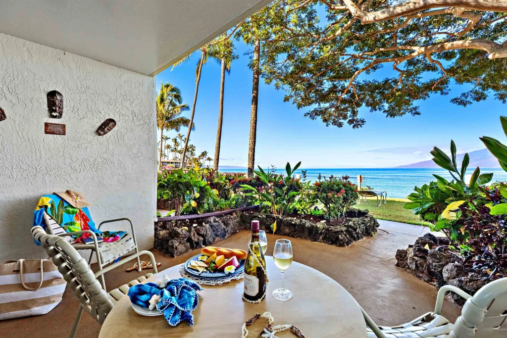 Spectacular Beachfront Location on Maui’s Napili Bay. This beautiful ground floor one-bedroom is super convenient for relaxing in the comfort of your Hawaiiana-inspired décor along with a spacious airy feeling in your new Maui home. From your beachfront lanai you can savor breathtaking West Maui sunsets, spot winter humpback whales, or unwind with an evening drink. The private lawn has chaise lounges and a BBQ area which also provides direct access to the sandy beach. Enjoy the convenient location to several dining options like the Sea House Restaurant at Napili Kai or morning delights at The Gazebo at Napili Shores. A short walk takes you to Kapalua, home to Merriman’s Restaurant, the Montage resort, two championship golf courses, and boutique shopping. Napili Sunset is self-managed by the Owners’ Vacation Pool, with on-site support to address your needs. The well-maintained property boasts lush tropical landscaping, making it a true beachside paradise perfect for relaxing and recharging.