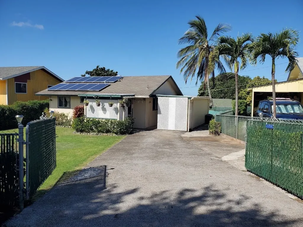 This very sweet two bedroom/ one bathroom home is located in a convenient Makawao location. The home interior has been freshly painted. The bedrooms and living room have AC units. PLUS 10 PV owned panels. There is a spacious yard that is totally fenced. A Total of 5 homes in the CPR.
