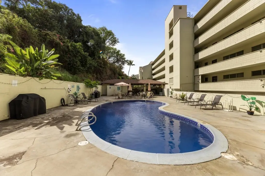 DON'T MISS OUT... EXCEPTIONAL OPPORTUNITY TO OWN VS RENT here at Puuone Towers and Plaza! Currently, one of the lowest priced 2bed fee simple units in Maui under $400k. This 6-story high-rise building is located in the heart of Wailuku, and super convenient to Central Maui's main shopping district, hospital, government services, UH Maui, Maui Arts and Cultural Center, and downtown Wailuku's eclectic shops and dining options can't be missed! Unit comes partially furnished to help you get started to your new "city life" in Maui! Recent updates in 2024 include: newer fridge, stack washer/dryer, newly painted, new flooring in entry/living area/main bedroom; kitchen sink/cabinet replaced; new ceiling fans; security screen front door; and more. You'll be impressed with the sweeping ocean and West Maui/Iao Valley views that are a delight to wake up to or enjoy with your favorite beverage at the end of the day on your private lanai! Bonus feature: Pet friendly complex, Security door entrance, and sparkling pool and barbecue area for entertaining! Whether you're a first-time homebuyer, or an investor looking for an ideal 1031 exchange unit, come feel the city vibe and buzz here at Puuone Towers! Schedule a showing today with your fave realtor and make your best offer before it's gone! Last 2 photos are virtually staged living areas.