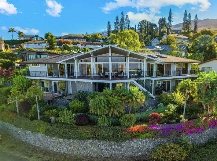 Be wowed by spectacular, unmatchable bi-coastal views from this contemporary two-level residence. In one of the most desirable Upcountry Maui neighborhoods, highlighted by its temperate climate; amazing bicoastal four-island views; convenience to top-notch schools, shopping & dining. The grand open-concept floorpan, complimented with vaulted ceilings; a fabulous rock-wall fireplace; large sliding glass doors/windows/skylights offering all rooms gorgeous views + access to the fully wrap around lanai. Bright & airy, this home has been tastefully updated with granite counters, cherry-wood cabinetry, high-end stainless appliances, “real" hardwood and ceramic tile flooring, providing warmth, comfort & functionality. All upper level rooms expand onto an enormous covered lanai featuring electronically controlled sunshade blinds, barbecue area; lounge seating. The lower level features ocean views: a substantially sized family room with fireplace; office area; supplementary laundry/full bathroom/mudroom; a 1-bedroom ohana with its own relaxing lanai. There is ample parking on the concrete driveway, multiple storage areas, an oversized 2-car garage with closeted shelving, painted floors, 2 slider glass doors opening to yet another lanai w awesome views. The wonderful back yard is ideal for kids & pets to play safely, featuring veggie gardens, multiple varieties of mature fruit abundant trees, all surrounded by extensive rock walls. Perched on a slightly sloped hilltop, this turn-key, fully furnished home offers privacy & spaciousness for a larger/extended family or multiple rentals for investment opportunities.