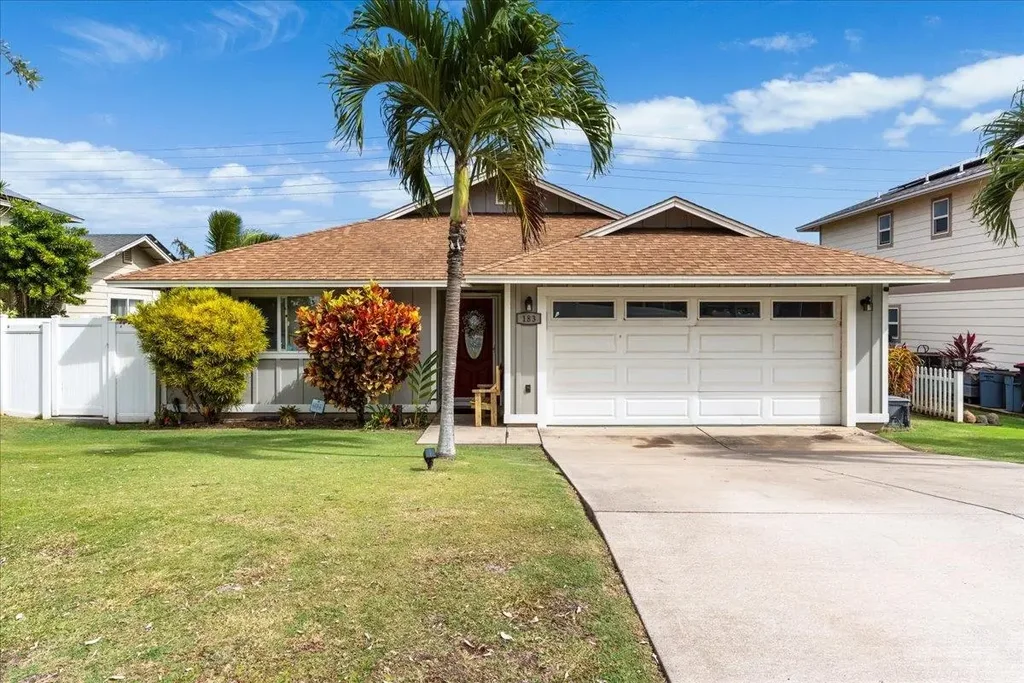 Welcome to this stunning 3-bedroom, 2-bath home in beautiful Waikapu Gardens! This home features cherry laminate flooring throughout and a kitchen equipped with granite countertops, a spacious granite island, a stylish tile backsplash, wood cabinets, and smudge-proof appliances. Enjoy breathtaking views of the West Maui Mountains and Haleakala Crater. Outside, you'll find a charming wood pergola, a concrete lanai perfect for barbecuing, and a vinyl fenced yard. Conveniently located near the hospital, airport, mall, and a variety of shopping, dining, and schools, this home is a true gem.