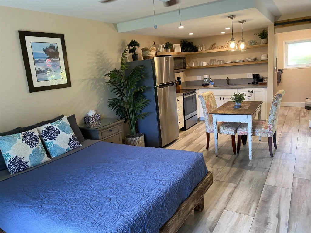This garden-view, ground-floor, corner, beautifully remodeled (in 2021) studio has porcelain tile floors throughout, split system AC, kitchen w/ stove, microwave, stainless steel refrigerator, custom wood floating shelves, custom cabinets, and gorgeous quartz countertops. Deeded parking spot is close by! The bathroom is spacious with a walk-in tiled shower, windows, a teak armoire for storage, and a decorative easily sliding door. Great vacation rental history, in terms of revenue and stellar reviews, and currently there is a FEMA lease in place at the rate of $6,000. per month plus HOA until April 2026. Napili Ridge is a hidden treasure in West Maui, a low-density peaceful complex with gentle tradewinds, lush greenery, and beautiful landscaping. Under the direction of an efficient AOAO, together with the dedicated Resident Manager, many recent updates to the property have been done. They include: replacement of windows, new rock walls, gorgeous colorful landscaping, proper drainage, and a spalling project in order to maintain the beauty and value for the homeowners. Onsite amenities include swimming pool, BBQ area, and on-site laundry facility. The complex is a short walk to beautiful Napili Bay, Honokeana Cove, the Gazebo, Sea House Restaurant, Island Vibes Café, and the Kapalua Coastal Trail. Enjoy stunning rainbows and tropical island life from your garden sanctuary.