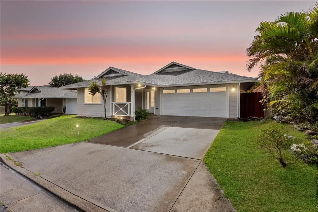 Located in the desirable Kaimana at Kehalani neighborhood, this single-level home with a private driveway offers 3 bedrooms, 2 baths, and a sought-after open floor plan with nine-foot ceilings. The spacious primary suite features a remodeled bathroom with dual vanities and a large walk-in closet, while the two additional bedrooms are thoughtfully positioned for privacy. The kitchen provides ample storage, generous counter space, and a dedicated dining area, making it perfect for entertaining. Custom plantation shutters throughout, including sliding doors, enhance natural light control, while the fully fenced yard offers a play area for kids or pets and a welcoming space for hosting. Added conveniences include an automated sprinkler system and a two-car garage. The standout feature is the 20 OWNED NET-METERED PHOTOVOLTAIC PANELS —run centralized A/C 24/7 and save significantly on electricity costs! Conveniently located near grocery stores, schools, and healthcare facilities—schedule your showing today!