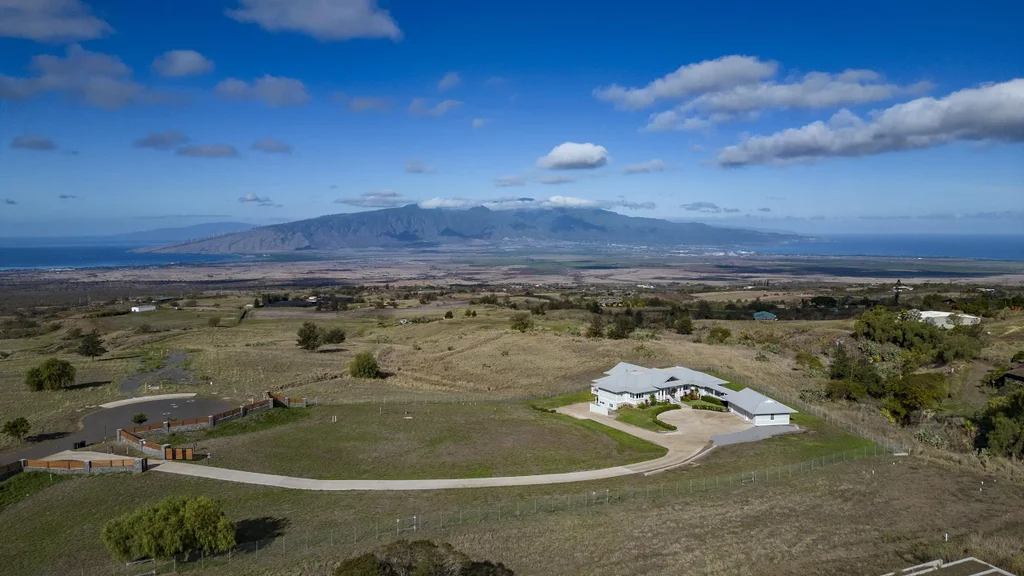 Welcome to Kula l'0, and this beautiful Upcountry single-level residence, which features ADA amenities and walkways. This property sits at the perfect elevation of approximately 2,000 feet. There is gentle slope to the topography of the 3.57 acres of land. The custom designed home is approximately 3,300 square feet of interior space, with additional covered lanai space for indoor-outdoor, living at its finest. The landscaping around the perimeter of the home is irrigated and landscaped. The dramatic mountain and bi-coastal, ocean views, are breathtaking. This home was built in 2020 and has air-conditioning and heat. The roof is a very attractive aluminum roof with custom detail by Rixey Design LLC. The property is fully fenced and gated, as well as the Kula l'0 gated community that consists of 35 lots, ranging from 2.5 to 25 acres, allows CPR, and features a private well system and potable and AG water. Don't miss this opportunity to live in one of the most desirable neighborhoods. Upcountry Maui offers some of the finest public and private schools and you are right in the middle of them all. Farmers markets, restaurants, shopping wellness and more, right at your fingertips.