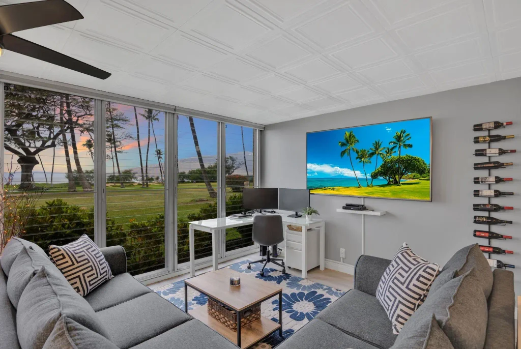 Welcome to paradise at 1002 S. Kihei Rd, Unit 113, Kihei. Beachfront unit with one of only 9 direct ocean views. This delightful, ground-floor gem in the Waipuilani community offers two spacious bedrooms and two modern bathrooms in 954 square feet of living area. Enjoy new floor-to-ceiling windows and a double-paned sliding glass door opening directly to oceanfront living. Windows include custom, remote controlled blinds; watch whales breach the ocean’s surface and enjoy perfect ocean sunsets with your favorite person. Traverse cool, cohesive LVP flooring from Bamboo Maui in this tastefully updated home. Dine in the beachfront kitchen that includes all new Whirlpool stainless steel appliances installed just prior to listing. The unit has a surprising amount of storage for all of your needs. Upon entry, a large closet is the ideal location for beach chairs, snorkel gear and more. Custom closet shelving in the primary suite lets you organize your Aloha shirts, board shorts, and “slippahs”. In unit, full-size washer and dryer make everyday chores easy. Raise a glass at your very own custom-designed bar, complete with dual beverage refrigerators. Relax at your community pool or sit at the water’s edge and visit with your friendly island neighbors. For athletic fun, pickleball and tennis courts are steps from your back door. This thoughtfully upgraded turnkey home invite you to embrace the relaxed island lifestyle that makes each day feel like a vacation in beautiful Kihei. Whether you enjoy this as your primary residence, your second home, or operate it as a rental investment, Unit 113 offers a great place to make your Maui home.