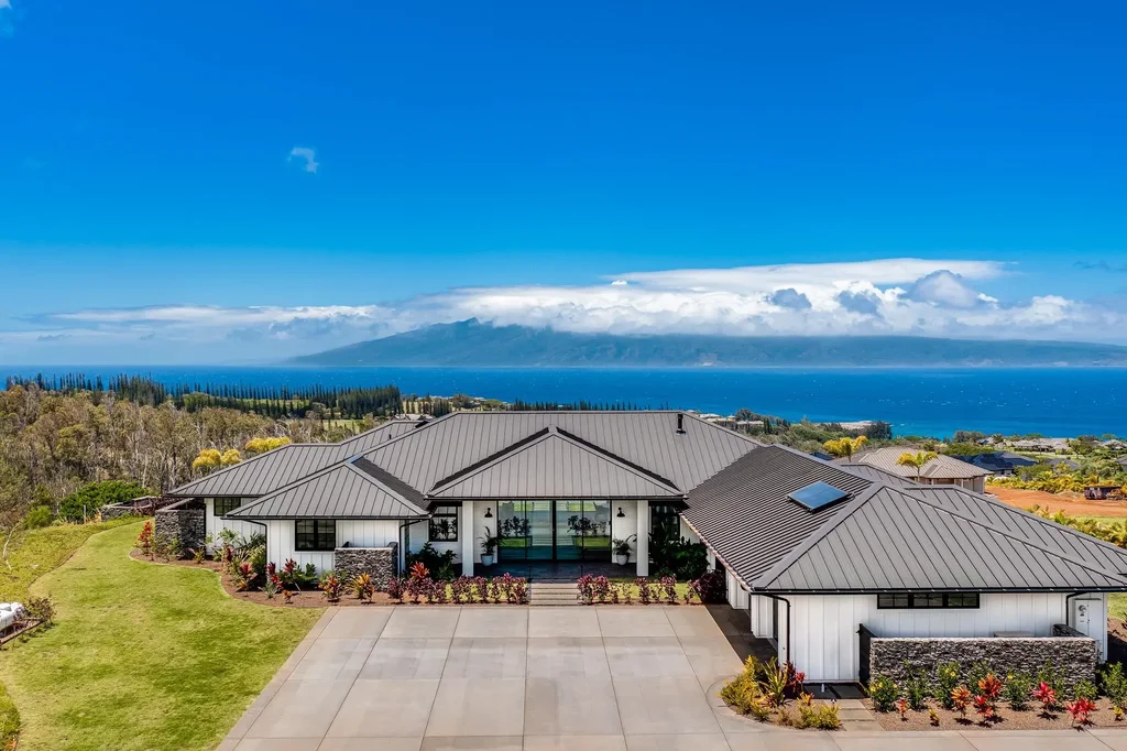Set on 2.56 acres in the Mahana Estates community within the Kapalua Resort, 500 Mahana Ridge is where timeless craftsmanship, smart design, and luxurious resort-style living come together. This custom-built retreat spans over 6,449 sq. ft. of total living, entertaining, and lanai space, with a 4-bed, 4.5-bath main home offering 3,742 interior sq. ft., a 462.5 sq. ft. 2-bed ohana, and 1,280 sq. ft. of lanai space that allow a seamless flow between indoor and outdoor spaces. A showcase of design-forward luxury, clean, modern architecture plays beautifully against Kapalua's stunning backdrop, with exterior rock walls made from locally sourced Kapalua stone. A standing seam metal roof, Marvin windows with black wood interiors, and 8 ft. solid wood doors throughout set the tone for the quality you'll find inside. Open-air elegance defines the main home, with a 14.5-ft. vaulted ceiling and a custom Carrara marble fireplace in the Great Room, which flows effortlessly into the kitchen and lanais beyond; a Sonos sound system allows you to set the perfect mood. The kitchen boasts Carrara marble countertops, Venetian plaster hood, Maui-built custom cabinetry and luxury appliances: Sub-Zero fridge and freezer, a Lacanche double oven, Wolf vent hood, and dual Miele dishwashers. A large island, with room for 6 barstools and end-cap shelving, anchors the space for everyday living. A pantry features a Sub-Zero beverage fridge, Wolf microwave, Moroccan Zellige tile backsplash, and soapstone countertops. The home’s 4 bedrooms, each boast spa-like en-suites. The primary bedroom suite is a private escape with 12-ft. vaulted tongue-and-groove ceilings, dual walk-in closets, and captivating ocean and pool views. The attached bath boasts Waterworks brass fixtures, dual vanities, a soaking tub beneath a statement chandelier, a massive walk-in shower with Moroccan Zellige tile, and a private outdoor shower. Bedrooms 2, 3, and 4 include walk-in closets and private outdoor showers. Bedroom 2 features an ocean-view lanai and en-suite with Carrara marble finishes, while bedrooms 3 and 4 share a Jack & Jill bathroom with black onyx countertops and dual shower heads. A flex room off the main living area works as a home office, wine room, gym, or creative space. While the mudroom off the garage boasts custom oak lockers, drawers, and slate flooring. The outdoor kitchen is outfitted with a Sub-Zero fridge, Wolf grill, black onyx countertops, and a gas fireplace with brick surround. Slate tile and Sonos sound ensure a refined ambiance. In the backyard, a stunning 14' x 40' saltwater pool beckons, complete with a Baja shelf and an oversized jacuzzi for 8. A pool bath offers direct access from the lanai. The 462 sq. ft., detached Hale with a full bath, is a flexible space that is equally ideal as a 1 or 2 bed-guest suite, office, or creative studio. This home features smart systems including a York 3-zone AC system, whole-home water filtration system, solar hot water heater, an indoor sprinkler system, security wiring and outdoor cameras, and Sonos sound system in the Great Room and main lanai area; the rest of the home is pre-wired for Sonos. Mahana Estates offers elevated living in one of Maui's most celebrated resort communities. Perched between the West Maui Mountains and the Pacific Ocean, this 125-acre enclave delivers the ideal Maui resort lifestyle. Residents are minutes from the award-winning Kapalua Plantation Golf Course, home to the PGA Tour's Sentry Tournament of Champions. Kapalua residents benefit from an easement that allows them to cut through the Ritz Carlton to access Fleming Beach and the golf course. Residents can drive golf carts into town or down for a massage at the Montage Spa. You can also purchase a membership at the Kapalua Club and enjoy benefits that include access to the Spa Montage, Beach Club, advanced tee times at two championship golf courses, and more! 500 Mahana Ridge is more than a home, it's a lifestyle.