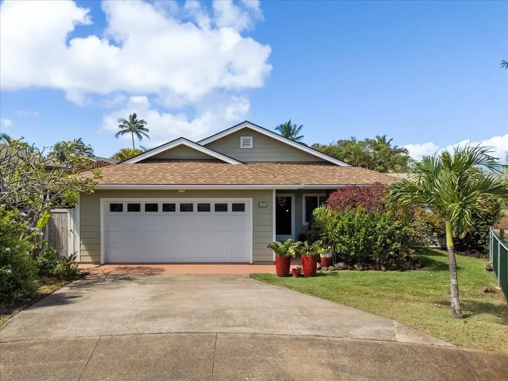 Tranquility House-A perfect balance of North shore excitement and garden tranquility. Completely renovated in 2019, this inviting North Shore home with ocean views shines with bright open spaces and premium finishes throughout. Beautiful bamboo hardwood floors flow through light-filled interiors, complemented by new appliances and modern updates from the comprehensive remodel. The thoughtfully redesigned floor plan includes an additional den/TV area, providing versatile living space for today's lifestyle needs. Enjoy outdoor living on three separate lanais, each offering a different setting for relaxation or entertainment, including a well-lit gazebo perfect for al fresco dining. The property features a private outdoor shower with hot water-ideal after beach adventures. Nestled on a peaceful cul-de-sac with family-friendly sidewalks, the home includes a productive backyard orchard yielding mangoes, limes, bananas, and grapefruit. Every room boasts efficient Mitsubishi mini-split A/C units, ensuring year-round comfort. Sidewalks along the short distance to Paia Town and Makana Park, with quick access to Hookipa State Beach, this turnkey property offers the perfect blend of North Shore convenience and private sanctuary living. The garage accommodates one vehicle with additional workshop space.