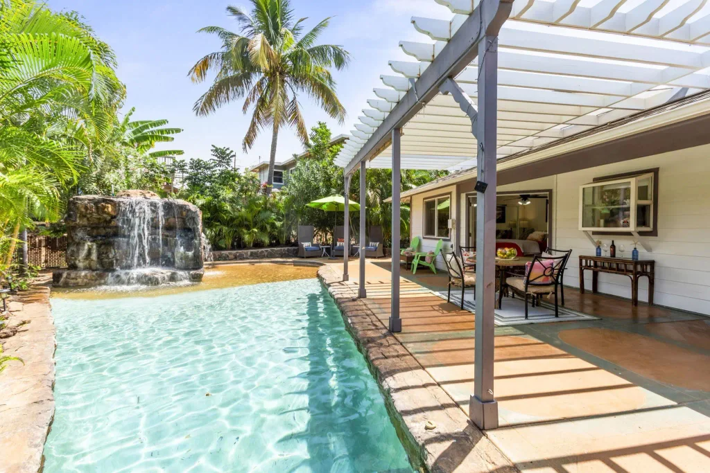 Where Island Dreams Take Root — Keala Hills, South Maui Step into your own private oasis in sought-after Keala Hills, where the centerpiece of this single-level South Maui retreat is a shimmering pool with a soothing waterfall, surrounded by lush tropical landscaping and birdsong. Whether you’re starting the day with a sunrise swim, enjoying a barefoot afternoon lounging in the sun, or winding down beneath the stars, this space offers pure island serenity from the moment you arrive. Tucked at the end of a quiet cul-de-sac, this 3-bedroom, 2-bath home welcomes you with an open, light-filled layout where natural sunlight flows through gentle archways and warm finishes. French doors from both the family room and the primary suite lead directly to your outdoor sanctuary, blending indoor and outdoor living with ease. This home is not only peaceful, but practical—with photovoltaic solar panels to power your central A/C, keeping you cool and energy-efficient. The fully fenced yard provides privacy, security, and space to play, along with the added bonus of room to build a detached cottage (ohana) for guests or rental potential. Ideally located just minutes from Kalama Beach Park, Cove Park, shopping, dining, and the heart of Kihei, this home offers the perfect balance of convenience and calm. More than a home, this is a lifestyle—a gentle invitation to live the Maui dream, one golden, sun-drenched moment at a time.