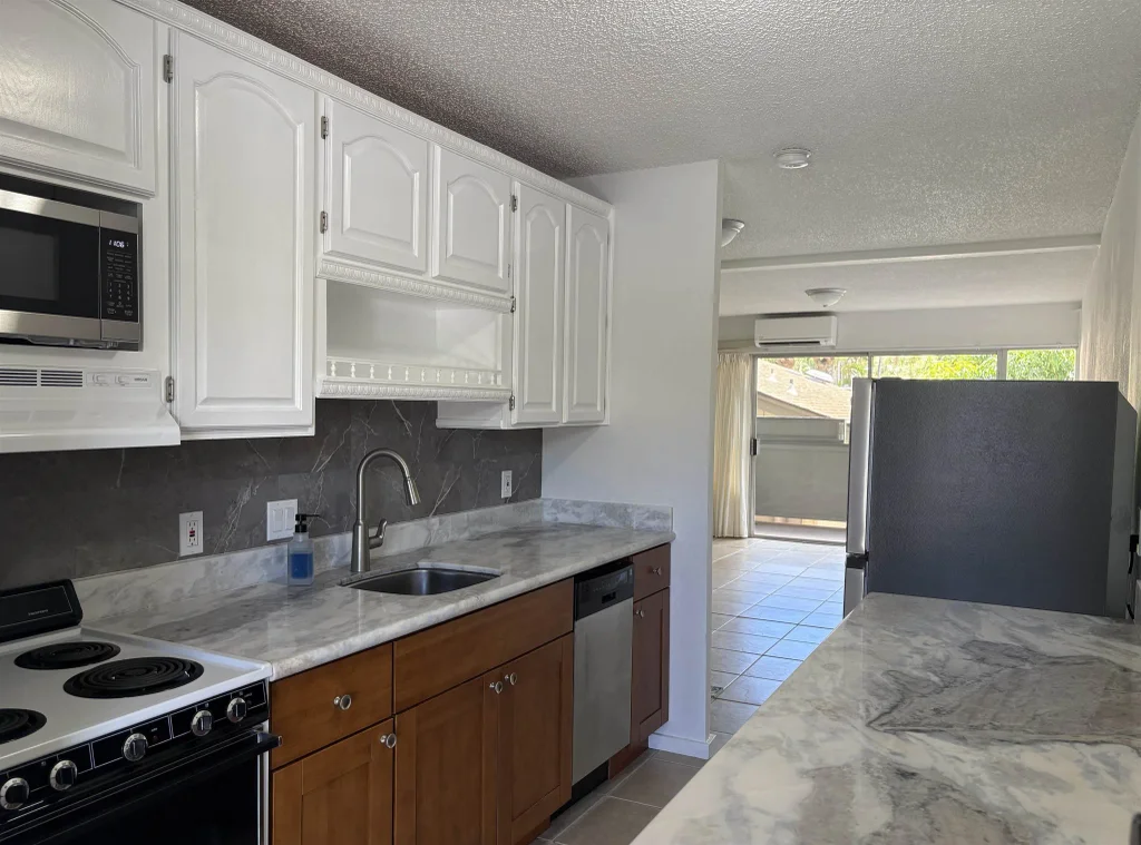 This is an ESTATE SALE. All reasonable offers will be considered. Ground floor unit in desirable location of the complex. Apartment is move in ready and has been "refreshed" - new split a/c unit, refrigerator, microwave, range hood, Decora outlets/switches, paint and more. Complex has a tennis court, pool, jacuzzi and bbq area. The maintenance fee covers water, trash, cable/internet and electricity (photovoltaic on roof is owned by HOA). Variety of fruit trees for owners to pick and enjoy. Large on-site laundry room. On LOCK BOX and easy to show.