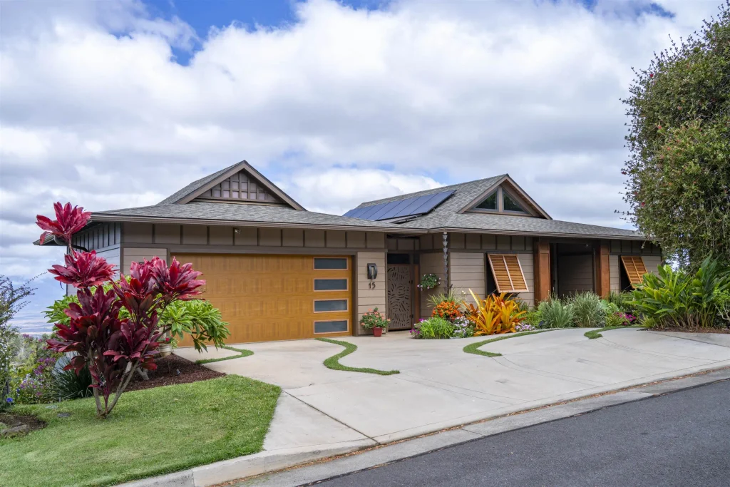 Maui - Move in Ready: Beautiful Architects home in the cool breeze Up-Country region with an amazing bi-coastal view. Designed for aging with all essential rooms on the main level including a roll-in shower with jacuzzi tub and a large covered lanai. Furnished for immediate move in. Located in one of the most desirable neighborhoods on this side of Maui, less than 30 minutes to shops, restaurants, airport, or beach. The lower level features another guest suite, office area, family tv area, shelved storage room, and another covered lanai overlooking a beautifully landscaped fenced backyard with banana and other tropical fruit trees, irrigation system, and night accent lighting. Special features include a beautiful Koi Pond, fireplace, security cameras, tankless water heater, and a solar generator with 13 solar panels. HOA dues are only $100 per month. Listor is Seller.