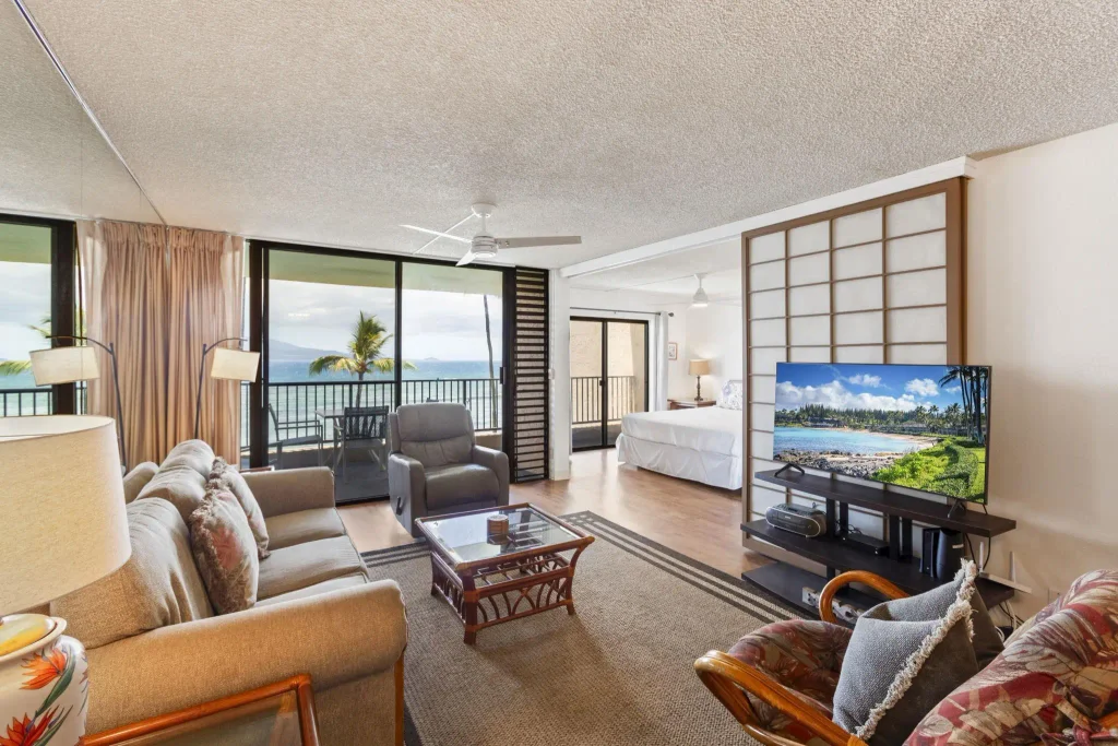 Wake up to Ma‘alaea Bay and unwind with sunsets that fade straight into the Pacific—Lauloa 303 sits only 30 feet from the shoreline. This true front-row, two- bedroom, two-bath condo captures uninterrupted views from the Freight Trains surf break up the South Maui coast. Open the lanai doors to blend indoor and outdoor living, while the prevailing trade winds drift naturally through the front entry to keep the interior comfortable. Ground-level amenities—a waterfront pool, twin BBQ stations, and a broad, manicured lawn—make lingering by the ocean effortless. Unassigned parking and on-site management keep ownership straightforward, and monthly dues cover water, sewer, and common-area care. From this central island base, you’re a short stroll to Ma‘alaea Harbor’s shops, restaurants, boat tours, and the Maui Ocean Center, with Kihei, Kahului, and Lahaina all within easy reach. If you’re looking for a genuine oceanfront canvas in a remarkably convenient Maui setting, Lauloa 303 offers a true front-row seat to island living. This is a leasehold condo.