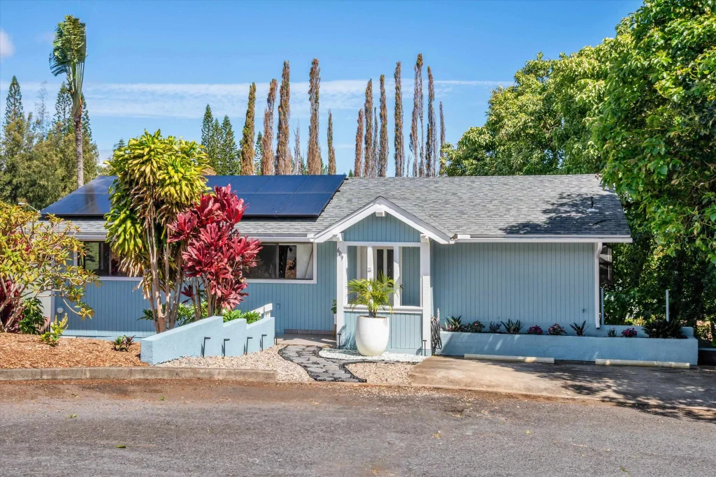 Welcome to 609 Loulu Way. This fresh two-story residence on a quiet cul-de-sac offers contemporary living, detailed upgrades & exceptional flexibility while still offering a bit of Makawao charm. Thoughtfully designed across two levels to accommodate a variety of living arrangements, the main level features vaulted ceilings, 2 bedrooms, 2 baths, living, dining & kitchen areas, 3 split AC units, upgraded walnut flooring and updated ceiling fans & lighting. The kitchen appliances have all been upgraded in the last few years and kitchen counters were replaced with stylish butcher block this year. The bottom level features a large primary bedroom, generous bath with soak tub, shower, dual sinks & water closet, a walk-in closet & laundry room. A spacious attached studio 'ohana with a full bathroom & private entrance downstairs provides the perfect space for extended family, guests, or rental potential. Incredibly spacious decks span the length of the home upstairs and downstairs making for desirable indoor/outdoor living & easy entertaining. The exterior of the home was painted in 2025, roof was replaced in 2020, 14 owned PV panels & Tesla Powerwall were installed in 2023. Come tour this lovely, versatile Makawao home today!