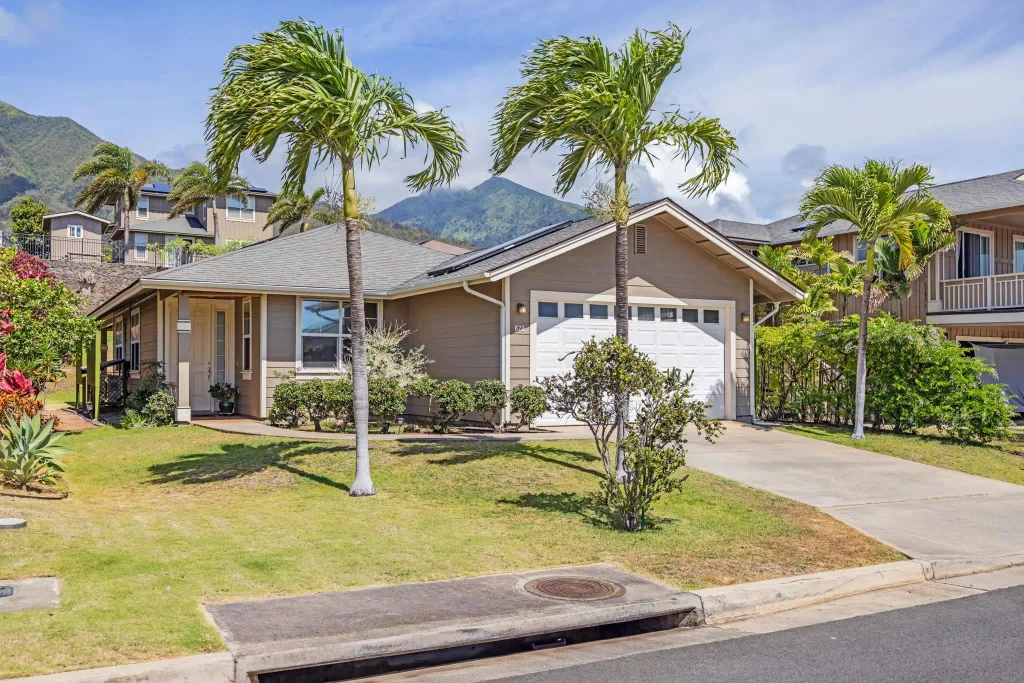 Welcome to this well-maintained 3 bedroom 2 bath single home, located in the Ohia subdivision of the highly desirable master planned community of Kehalani. Vaulted ceilings make the house feel roomy. Your family and friends can get together on the large covered lanai. 14 photo-voltaic panels keep electric bills low. This house remains cool all the time, but also has a split AC and upgraded insulation to quickly chill house down when desired. There are mature trees like: fig, lime, papaya, and dragon fruit The Ohia subdivision is conveniently located close to school, parks, shopping, a hospital and doctors' offices, state and county services.