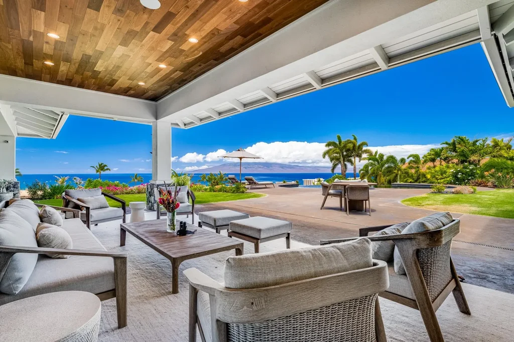 Welcome to 91 Lewa Lani, an exceptional island residence located in Lanikeha, a double-gated neighborhood within the prestigious Kaanapali Golf Estates. This stunning home features 4 spacious bedrooms and 3.5 bathrooms across 3,360 sq. ft. of beautifully appointed interior living space that boasts refined design and panoramic views of the Pacific Ocean and neighboring islands. The home has undergone extensive upgrades, inside and out. From the moment you enter, 91 Lewa Lani impresses with warm Cumaru hardwood flooring, high ceilings, and a seamless indoor-outdoor layout. The open-concept Great Room flows into the chef's kitchen and dining area, which features custom European walnut veneer cabinetry, waterfall-edge quartz countertops, and top-tier appliances. Walls of glass pocket doors open to the covered lanai, framing mesmerizing views that stretch from the Kaanapali coastline to Lana'i and Moloka'i. Ideal for entertaining or everyday relaxation, the outdoor living area includes a shaded lounge, an alfresco dining space, and an infinity-edge pool and spa. Upgrades to the pool include a saltwater system, deluxe vacuum, upgraded ventilation, and cartridge filtration. Interior upgrades are extensive. Custom California Closet systems have been installed in all bedrooms, the pantry, hallway closets, and the garage. Motorized interior shades have been installed in the bedrooms, dining room, and living areas, while ceiling paneling has been added to the dining room and the outdoor lanai. Additional enhancements include a built-in safe, an expanded kitchen backsplash, two new roof awnings, and a shade screen. In the living room, the TV wall was tiled, adding a refined focal point. The Primary Suite is a private retreat with direct access to the lanai and pool area. Its en-suite bathroom is spa-inspired, featuring a smart toilet, towel warmer, and privacy glass film for comfort and convenience. A junior suite located on the opposite wing of the home offers a tranquil space for guests or family and also enjoys direct access to the outdoor living spaces. Nearly $200,000 has gone into tropical landscaping, including more than 50 fruit-bearing trees that add color, fragrance, and flavor to the property. Two new sheds and a fully enclosed outdoor storage room, with sink and doors—offer practical space for garden tools, beach gear, and more. Additional upgrades include a built-in safe, an expanded kitchen backsplash, two new roof awnings, and a shade screen. The 745 sq. ft. 3-car garage offers ample storage for vehicles, including a golf cart for riding to the nearby Lanikeha Clubhouse or Kaanapali Beach. Improvements to the garage include an AC system, a refrigerator, and paddleboard, kayak and paddle racks. Whether you're enjoying morning coffee on the lanai or sunset swims with island views, 91 Lewa Lani offers the best of Kaanapali living—fully upgraded.