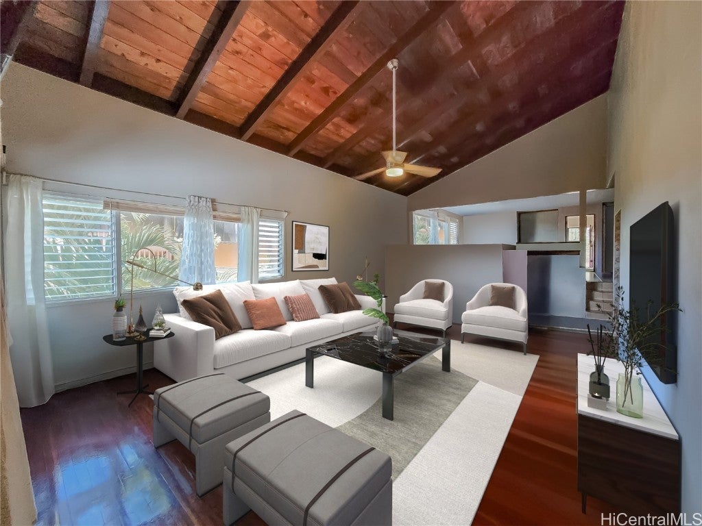 Incredible ocean views of China Man's Hat from a 42,000+ square foot Garden of Eden. Enjoy the bountiful nature with fruiting mountain apple trees to avocadoes, bananas, cherry guavas, mangos, and refreshing Samoan coconuts. This rare Gem has only had 1 owner and was built to last with care and quality. Koa wood floors and vaulted ceilings with a split-level open floor plan make this home perfect for entertaining. OWNED PV PANELS AND SOLAR WATER. Relax in paradise on the massive lanai overlooking the lush jungles of Kaneohe with the Ko'olau Range as a backdrop. The cool, serene environment is the perfect place to restore your energy after a long days work. Book your showing today!