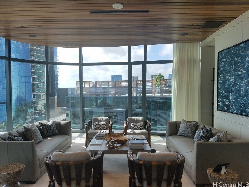 Beautiful views of city, ocean, mountain from spacious living room. Modern Hawaiian deco welcomes you to this 2-bedroom with ensuite baths. Relax in your soaking tub or use the many amenities of this luxurious building: Infinity pool, spa room, tennis court, gym, sauna...so many options. There is also a guest suite for over-night visitors. Enhoy the shops and restaurants of Ward Village. Live-Work-Play in the neighborhood: Ala Moana Beach Park, and the shopping center are nearby.