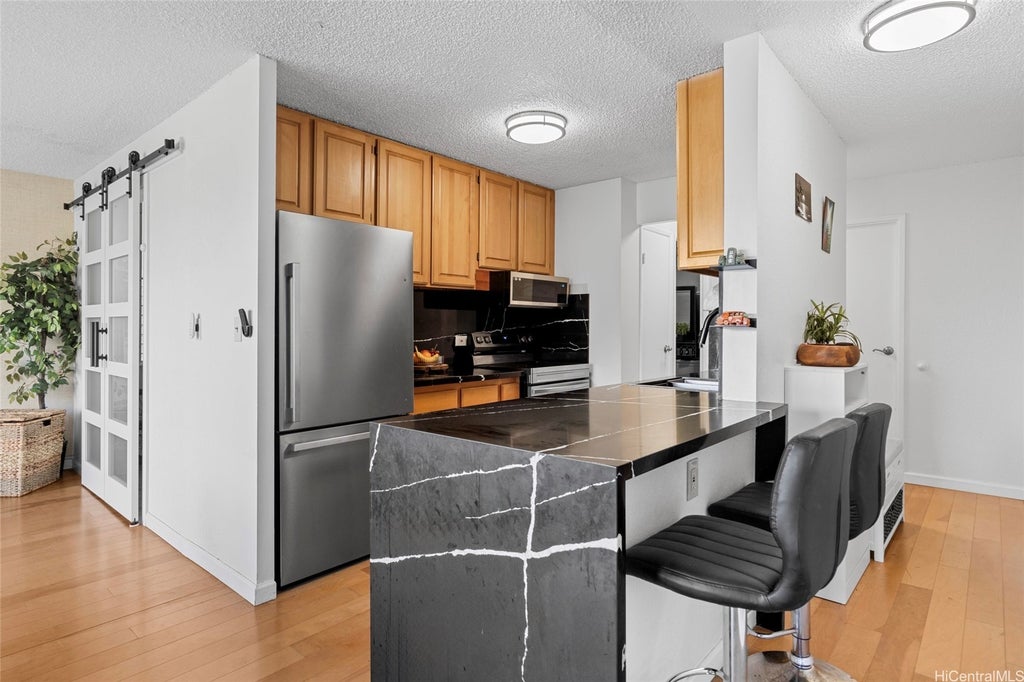 Welcome to your dream Honolulu retreat! This beautifully renovated condo offers a versatile space. Enjoy breathtaking mountain, water and golf course views right from your living room and bedrooms. The unit boasts an open, airy living and dining area, perfect for entertaining or relaxing in style. The gorgeous, updated kitchen features modern finishes and sleek design making cooking and entertaining a joy. Parking is no issue as you will have your own assigned parking. The building also has multiple guest parking. This Building is Pet friendly. Additional perks include your very own storage unit and access to a secure bike and surfboard storage area adding convenience to your everyday living. Don’t miss this incredible opportunity to live in a renovated, modern, and spacious condo in one of Honolulu’s most iconic and desirable locations. Shown as a usable two bedroom but TMK/county records indicate it as a 1-bedroom with no permit on file. Highlights: -Pet Friendly condo - 2 Rooms - 1.5 Bathrooms - Mountain, Water, Golf Course View -Common area Heated Pool - Assigned Storage Unit - Easy Walk to Shopping and Dining - Low floor for easy evacuation -Assigned Parking