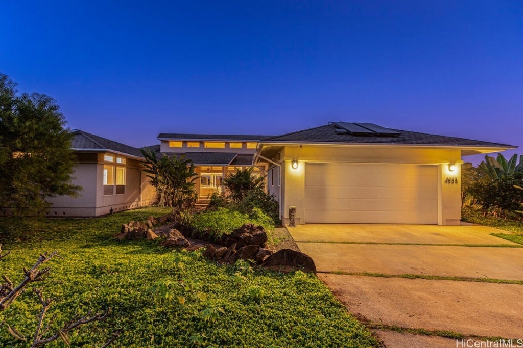 Discover your private waterfront oasis on 1.39 acres in Kauai, blending luxury and sustainability. This 4-bedroom, 4-bathroom home offers 3,686 sq ft of living space, with 1,581 sq ft workshop and 850 sq ft AG building. Inside, enjoy 19-ft ceilings, two primary suites, and a private Mother-in-Law suite. Safety features include a hurricane shelter with 8-inch reinforced concrete walls. Sustainable living is enhanced by a 5kW electric solar system, solar hot water, and a water catchment system for irrigation. A generator disconnect switch ensures easy power backup. Convenience includes a large propane tank for gas appliances and a Tesla charging station for electric vehicles. Outdoor amenities feature a fruit orchard, a treehouse on a private island with a fire pit, and access to a 21-acre reservoir shared with only eight other owners, perfect for kayaking and fishing. This rare property combines luxury, privacy, and sustainability in one of Kauai’s most sought-after locations.
