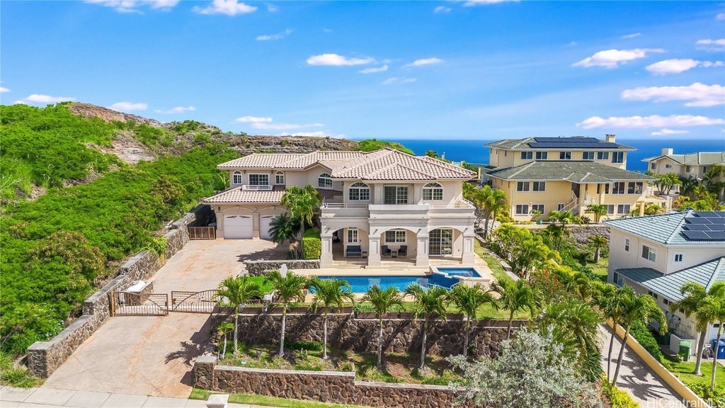 Perched at the top of Kamehame Drive in Na Pali Haweo, one of Hawaii Kai’s newest neighborhoods, this 3,299 sqft estate offers breathtaking ocean, city, and Koko Head views from its 10,261 sqft lot. Built in 2006, the home embraces island living with elegant design and quality craftsmanship. Set in a prestigious community with 24-hour security patrol, it provides privacy and peace of mind. Just five minutes from Sandy Beach, Sea Life Park, Hanauma Bay, and Koko Head Trail, outdoor adventures and watersports are at your doorstep. Nearby, Koko Marina and Hawaii Kai Shopping Centers offer dining, coffee shops, 24 Hour Fitness, and Costco. The home features a 2022 upgraded central A/C system with a 10-year warranty, a Ring Security System with police monitoring, a private automatic gate, and a saltwater pool and spa with a heating system, all remotely controlled via Pentair ScreenLogic. A dedicated maintenance team for the pool, garden, pest control, and handyman services can seamlessly continue with the next owner. This rare opportunity combines luxury, security, and the best of island living.
