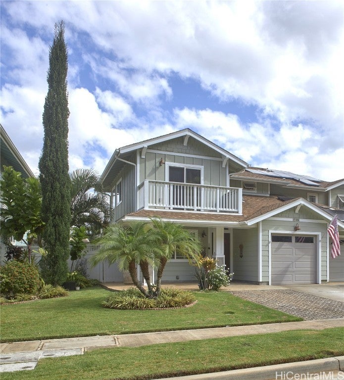 Price Reduced! Beautiful and immaculate home in desirable Nohokai in Sea Country! Wonderful upgrades throughout including a spectacular kitchen with 42" upper cabinetry, premium appliances, granite countertops, tile backsplash. Elegant crown molding, baseboards and door casements throughout the home. The bathrooms are updated with tile and granite and off the living area is a breezy screened in lanai with coffee/bar area and wine/beverage refrigerator. Great backyard with a variety of tropical plants and a rooftop deck with fabulous views of the mountains, valley and toward the ocean. And, an outdoor shower to rinse off after those days at the beach! A terrific layout with spacious rooms, an extended dining room and arched doorways that add to the beauty and comfort of the home. Additional built-in cabinetry in living area for TV and extra storage. Downstairs bedroom and full bath are perfect for extended family or guests. Upstairs, there is wood flooring and the primary bedroom has a lanai and a beautiful, roomy bath with double sinks. ASSOCIATION FEE ONLY $77/MO. The community pool, dog park and beaches are nearby and Ko Olina is a 15 minute drive. This is a must see home!