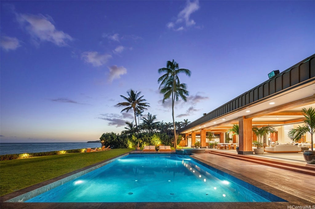 Spectacular Oceanfront Estate in Prestigious Kahala– Welcome to a stunning oceanfront estate in Kahala, a rare 1.3-acre retreat from street to sea. With 171 linear ft of breathtaking ocean frontage, this newly reimagined home blends contemporary design w/Hawaii’s natural beauty. A gated entrance leads to a grand motor court, setting the tone for exclusivity. Inside the 10,000 sq ft, single-level HM, rich Burma Teak, soaring ceilings, & floor-to-ceiling glass create a seamless indoor-outdoor connection. Walls of glass pocket away, revealing uninterrupted ocean views. The expansive oceanfront lanai, spanning 5,000 sq ft, is designed for intimate gatherings or grand entertaining, featuring a sunken wet bar, built-in BBQ, & multiple lounge areas. The primary suite is a private retreat w/ lanai access & a spa-like bath wrapped in stone. Each guest suite offers its own peaceful escape, w/ separate living areas & serene garden or ocean views. A chef’s kitchen, resort-style beachside pool & spa, & meticulous craftsmanship complete this one-of-a-kind estate. Thoughtfully designed & impossible to replicate, this is oceanfront living at its finest in one of Hawaii’s most prestigious enclaves.