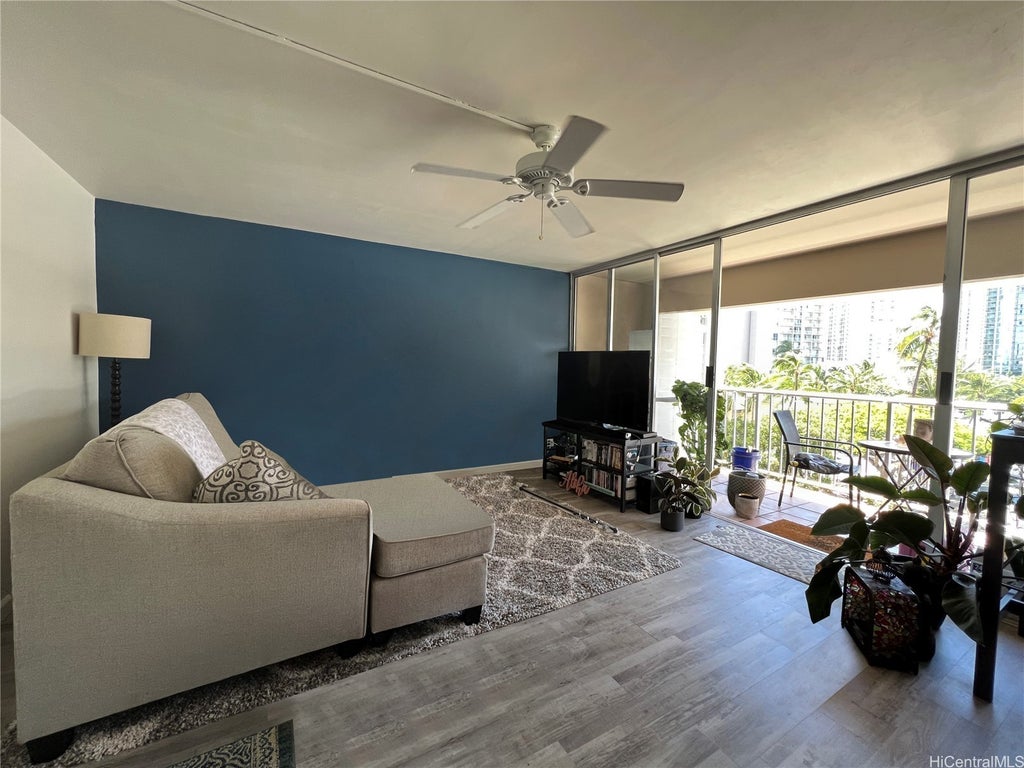 A large 1- bedroom home in the popular and well-managed Keoni Ana condominium is ready for you to move into and enjoy. Unit 112 is located on the second floor in a more private location. The floor plan is well thought out with an extra-large living room, full kitchen, spacious bedroom, and relaxing lanai. There's also a washer & dryer in the unit, which is hard to find in Waikiki. It's tucked away in a quieter area, located at the gateway to Waikiki and gives you quick access in and out, avoiding much of the hustle and bustle of the city. 1/2 a mile to Fort DeRussy Beach, Hilton Hawaiian Village, and more. ASSUMABLE VA RATE at 2.875 FOR VA BUYER~