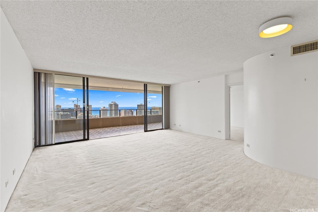 This is an exceptional beautiful Penthouse unit that rarely comes on the market! The Royal Iolani condo is a complex of two towers that stand right next to Iolani school. At 40 floors each, this is one of the taller condominiums around. despite that high number of levels, there are only four units on each floor, allowing for larger spaces and reducing any feeling of being crowded. This special penthouse unit has an unobstructed, expansive lanai with 180° panoramic views from Ewa to Diamond Head, which you can enjoy the spectacular view from sunrise to sunset. Also the night view is breathtaking. Located right next to Iolani school, one of the best schools in Hawaii. One spacious parking lot at the entrance next to the gate is included. About amenities, the Royal Iolani condo has a beautiful garden, pool, BBQ area, party room, exercise gym, sauna, dog park, tennis courts, guest parkings... and more. Also it is well maintained with electricity included in the maintenance fee, and the exterior of the building has just been renovated. This special Penthouse unit is ready to be customized to your taste, AS IS condition. (*Tenant occupied, showing is available based on appointment)