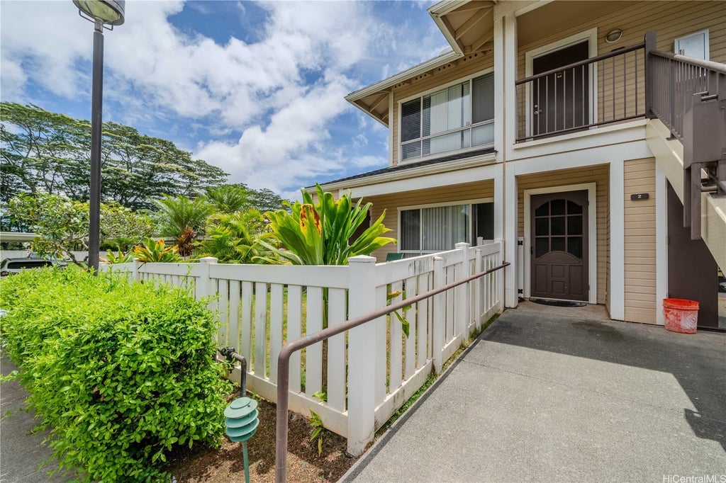 Just listed and guaranteed to fly off the market — don’t miss your chance to own this highly sought-after, breezy corner unit in the gated community of Havens at II Vistas in Mililani Mauka! This rare 3-bed, 2-bath ground-floor gem offers an open layout with three separate exits, private front and back fenced lanais (with no rear neighbors!), and two parking stalls right in front of your door — plus the mailbox for added convenience. Enjoy comfort and style with this unit, fresh paint, A/C, and ceiling fans throughout. Live your best life with access to seven rec centers, including six pools, two splash pads, and the amazing Rec Center #7 featuring a Starbucks, gym, and pool — all within minutes of top-rated schools, military bases, parks, and shopping. VA-approved and priced to move, this home is a rare find — act now before someone else grabs it!