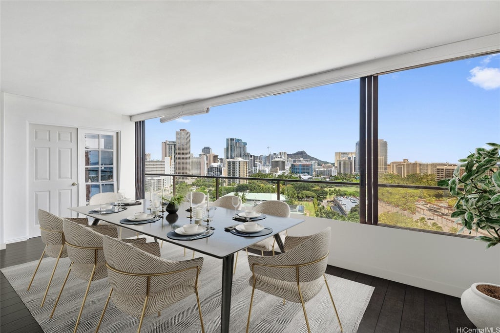 INCREDIBLE DIAMOND HEAD, OCEAN, & FIREWORK VIEWS! 2 Bed x 2 Bath, highly sought-after "C" stack unit in the famous Canterbury Place. Unobstructed panoramic views from the 19th floor with over 1300+ sqft of living space, true perfection for Hawaii living. One assigned covered parking stall. With resort-style amenities like a jacuzzi, heated pool, pickleball, sauna, & BBQ this property offers a lifestyle of luxury and ease, standing out in every way. 5 Star restaurants are awaiting in the lobby and quick walk to the Waikiki Beach!