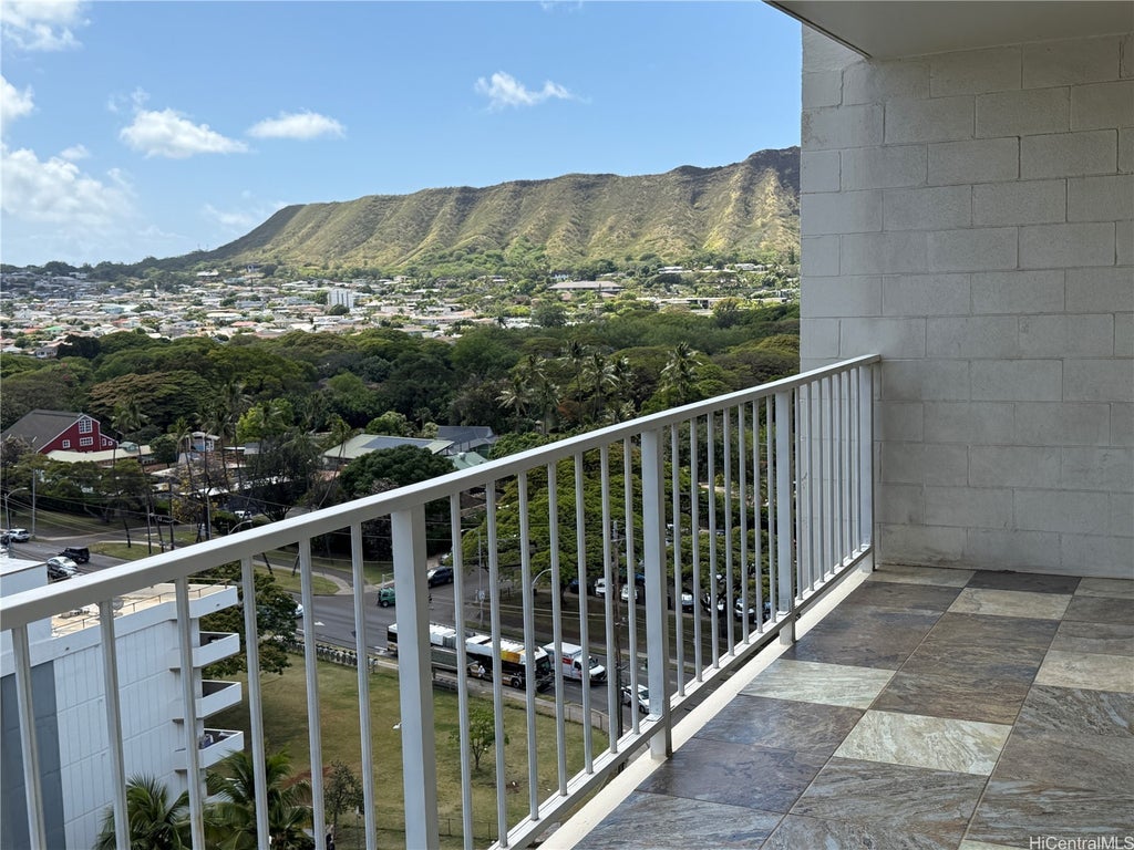 Gorgeous Views of Diamond Head, Koolau Mountains, Waikiki skyline and ocean! Located on the desirable end of Waikiki just steps from famous Waikiki Beach, Kapiolani Park, Waikiki Shell, Honolulu Zoo, restaurants and entertainment. *MOTIVATED SELLER*. Only four units on each floor. Unit is a corner unit with a 300 sq ft wrap-around lanai, located on the cooler side of the building with fresh trade wind breezes. Unit is newly painted throughout unit, washer/dryer in the unit, one covered parking stall located close to elevators, tile flooring throughout. Partially furnished - sofa, TV stand, beds. Conveniently located on multiple bus routes. Features include swimming pool, BBQ area, resident manager, secured entrance, video surveillance. Rentals of 30 days or more allowed. (maintenance fee $1062, special assessment $300, lease rent $667). Leasehold land tenure until 2046.