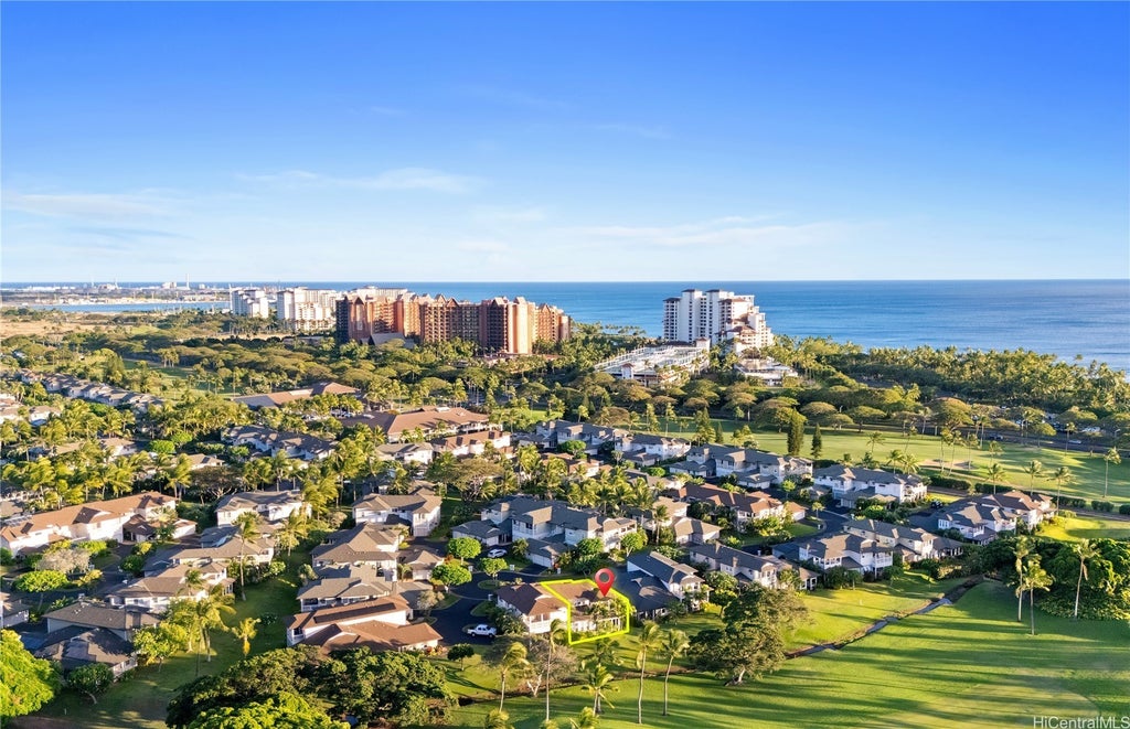 This exquisite Tuberose model fronts the distinguished 12th green and 13th tee off of Ko’Olina Golf Course, a masterpiece designed by Ted Robinson and acclaimed by Golf Digest. With 1,608 square feet of refined luxury living space, this residence offers two bedrooms and two bathrooms. The main level invites you into a sophisticated open floor plan featuring a full bedroom and bath, a modern kitchen, a versatile den/office (potential third bedroom) and a gracious living room. The entire main floor is covered by meticulous marble flooring, plantation shutters on all windows, sub-zero refrigerator and 9'3" ceiling heights. Two (2) covered patios offers sweeping 240 degree golf course views. The upper level houses the luxurious primary suite, complete with dual walk-in closets and a five-piece bath. A convenient two car garage with direct access enhances this elegant lifestyle. This is the first time this unit has been on the market and it is a true gem. Directly outside this gated community are famous restaurants, boutique shops, and world acclaimed resorts. Discover unparalleled elegance in this gated resort neighborhood.