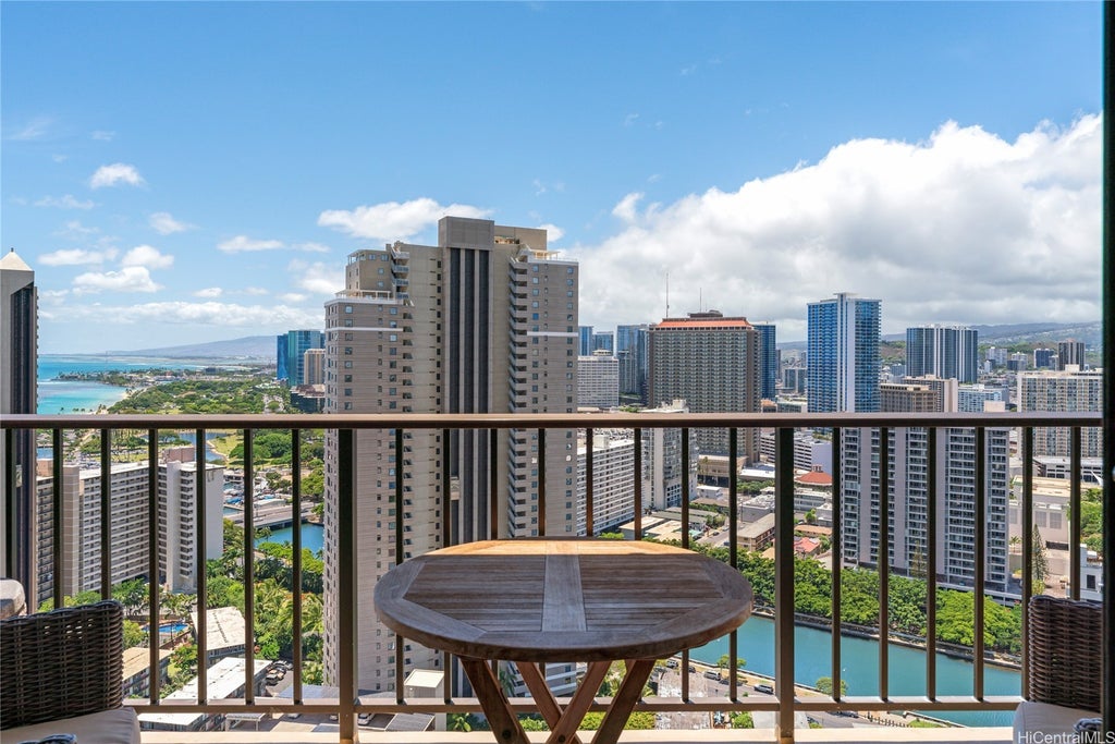 Rare two bedroom, high floor, end corner unit in Chateau Waikiki! Featuring amazing wrap-around ocean, city, canal, and mountain views with the rare convenience of two deeded parking stalls. Located in a quiet area of Waikiki, you're walking distance to Ala Moana, International Marketplace, Waikiki Beach, Ala Wai Boat Harbor, Hilton Hawaiian Village, and so much more. Fantastic amenities includes a swimming pool, sauna, library, 24-hour fitness center, and BBQ area. An excellent opportunity to live the island lifestyle you've been dreaming about!