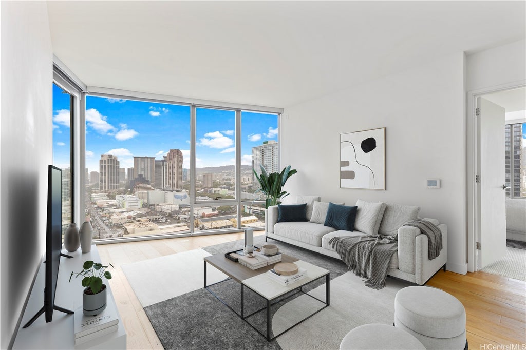 Immaculate 2 bedroom, 2 bath unit in Ae'o, Kaka'ako's luxury building! Corner end unit has a Floor-to-ceiling windows provide ample light and create a feeling of openness. Unit includes engineered hardwood flooring, stainless steel Bosch appliances, Grohe fixtures, quartz countertops, custom cabinetry, Central A/C, and more! Ae’o boasts resort-like amenities, including large lap pool, hot tub and family pool, several BBQ cabanas, kids playground, fitness center, dry sauna, steam room, movie theater, media/karaoke room, private dining room, dog park & a rooftop recreation deck with sweeping views. Residents conveniently have direct and covered access to Whole Foods, Straub medical clinic and Ward Village's many shops & restaurants. Steps away to Ala Moana Beach Park & Ala Moana Shopping Center! Maintenance fee is $902.08/month. Other monthly fee is cable/internet $45.91 + reserve $177.40. Ward Village association fee is $30.88/month.