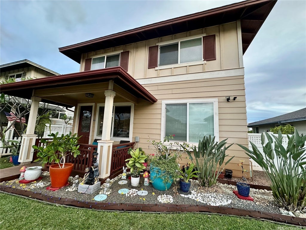 Price decrease! Welcome home to Mehana in Kapolei! This meticulously maintained 3 bedroom, 2.5 bathroom gem boasts an open concept living area with modern upgrades and eco-friendly features, including 12 PV panels for sustainable living. The property is fully fenced with a beautiful landscaped patio, yard, a thriving garden and fruit trees, including mango, tangerine, dragonfruit, coconuts. Nestled in the growing Mehana community, enjoy access to the MAC center's pool, gym, rec center, playgrounds, dog park, walking paths, and more. Conveniently located minutes from public schools, restaurants, Ka Makana Ali'i Mall, Target, Costco, Koolina, and more.