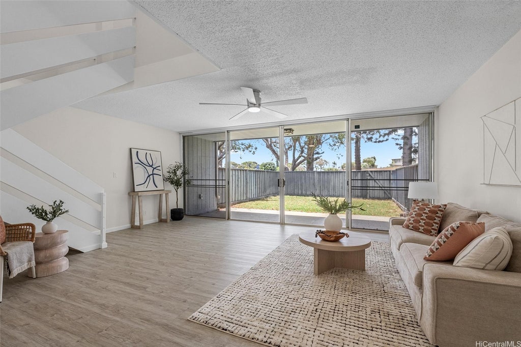 Beautifully renovated corner unit at Mililani Garden Homes 1 with 100% hurricane coverage! This spacious 2-story townhome feels like a single-family home, with neighbors on only one side and a private fenced yard that opens to a park. Modern upgrades include luxury vinyl flooring, quartzite countertops, stainless steel appliances, mirrored closet doors, newer lighting, and a landscaped lawn with automatic sprinklers. Thoughtfully designed with 3 bedrooms, 2 full baths upstairs, half bath laundry room with side-by-side full size washer / dryer and separate dining and living room areas on the main level. Enjoy seamless indoor-outdoor living with a fenced lanai perfect for pets, BBQs, and gatherings. Enjoy a covered carport and an additional assigned stall. Located next to Mililani Rec Center 1 with a 10 ft deep lap pool, water slides, jet spa and more! Convenient access to shopping, dining, golf courses, parks, and all 7 Mililani recreation centers—experience the best of island living!