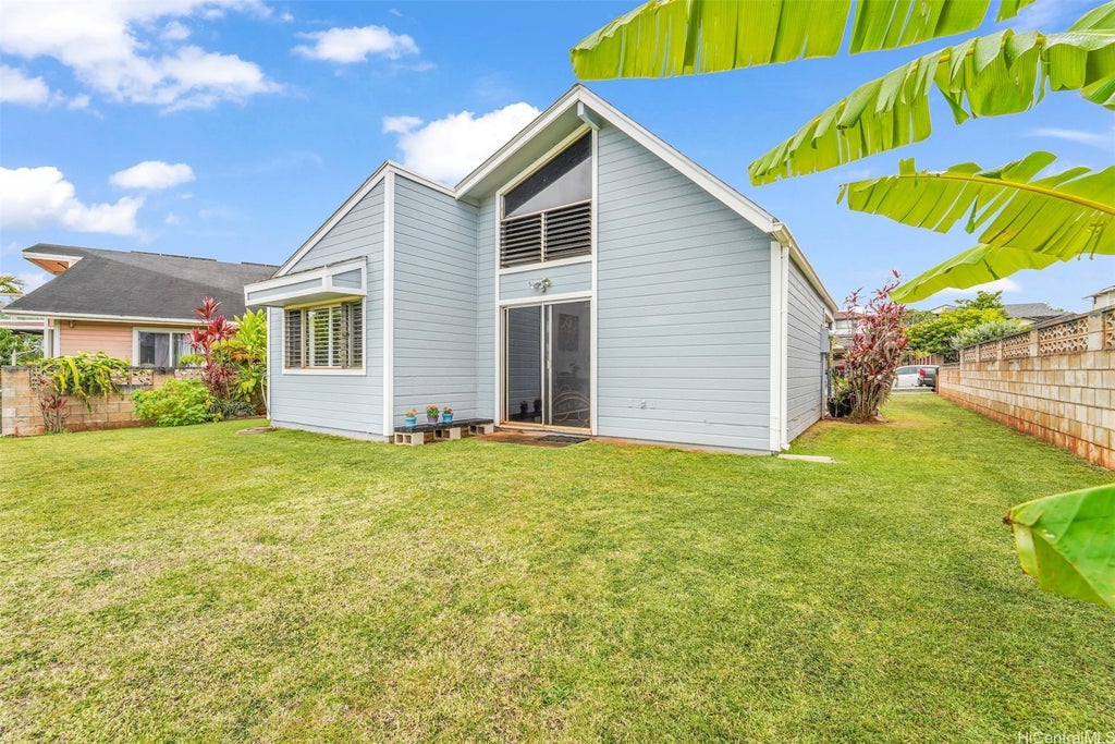 NEW PRICE!** RIM LOT! Rarely available 7749sf Rim Lot in Mililani with room to grow. Don’t let the small footprint fool you! This adorable home has much more to offer than meets the eye. With 7749sf of land and a view, you have a rare opportunity to expand and transform this already great home into a multifamily showstopper. Imagine sitting on your deck overlooking the beauty of the forests, Diamond Head, the Pacific ocean, sunsets and rainbows. Clean and tidy with all tile flooring, ceiling fans, plantation shutters, high ceilings, a huge yard and large carport and a delicious mango tree! Mililani offers popular schools(greatschools.com), easy freeway access, shopping, dining, parks and so much more. Don't forget the cooler temperatures you'll enjoy all year round. Property is part of the Mililani Town Association (Mililanitown.org). Come visit us soon! Open House 9/21/25 2:00 to 5:00.