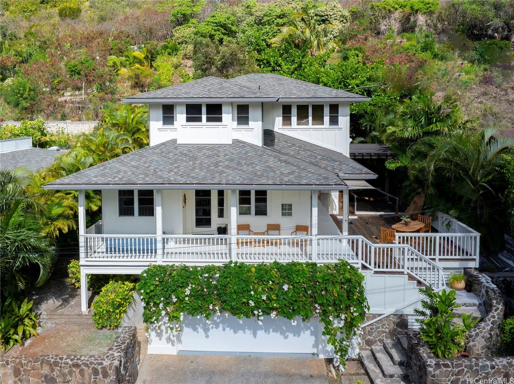 Crafted by Kahala Construction and Amika Design, this stunning 4-bed, 4-bath home captures the tranquility of Kuliouou Valley. Tucked in a quiet cul-de-sac, it blends island charm with modern luxury. Enjoy lush landscaping, sweeping ocean and valley views, and fragrant breezes throughout. Thoughtfully designed with dual suites on both levels and a ground-floor ADA-compliant bathroom—perfect for multigenerational living or guests. A legal ADU with its own kitchenette offers added flexibility or rental potential. The private ocean-view suite upstairs features a spa-like bath with walk-in shower and soaking tub overlooking a serene garden. Inside, high-end finishes, sleek design, and stainless steel KitchenAid appliances elevate the space. Expansive picture windows fill the home with natural light and frame breathtaking views. Come experience the best of East Oahu living—schedule your private tour today!