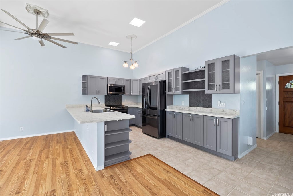 Lovely 3-bed, 2-bath, 2-parking corner unit townhome in Temple Valley! This pet-friendly unit is ideal for first time homebuyers or for investors. The renovated kitchen adds a modern touch and extra space for cooking, while the vaulted ceilings complement the open concept living area that flows onto the sizable lanai. The split ACs, all brand new as of 2024, will keep you cool on low-breeze days. The storage closet on the lanai and the extra storage downstairs will come in handy. Relatively low maintenance fees of $814.70 per month ($300-$600 per month lower than nearby units!) make this home much more affordable. The upstairs bedroom comes with a desk and giant TV as a bonus. Kids will love the community pool, nearby playground, plus the clubhouse for parties. It’s super easy to see, so get in touch with your agent right away!