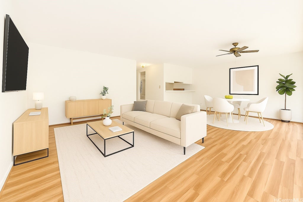 Welcome to this spacious 3-bedroom, 2.5-bath home in the Hokuloa community, complete with an enclosed, attached 2-car garage. The property backs onto conservation land, creating a peaceful retreat with lush greenery right outside your door. A large, attached, enclosed yard makes the perfect space for pets in this pet-friendly complex and offers a private setting for entertaining, gardening, or simply relaxing. You'll find yourself sipping coffee or having pau hana on your newly updated lanai off the primary suite. This home features a comfortable primary retreat complete with a walk-in closet, sunlit living spaces, fresh interior paint, and newly reglazed tubs—perfectly prepared for you to move right in. Hokuloa’s amenities include tennis courts, pools, and walking paths, blending both recreation and relaxation. Conveniently located near Temple Valley Shopping Center, schools, restaurants, Windward Mall, and H-3 access, this home offers easy connections to beaches and the best of Windward Oahu. One or more photos have been enhanced