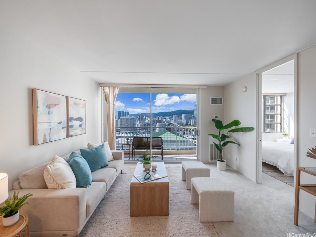 Smart investment meets island lifestyle in unit 2612 at Villa on Eaton Square. This west-facing 1BD/1BA enjoys golden afternoon sun with views of the city skyline, Ala Wai Canal, marina, and even a peek of the ocean from the lanai. Thoughtfully upgraded with smooth ceilings (no popcorn!) and brand-new central AC for cool, quiet comfort. The secure, pet-friendly building offers an impressive rooftop deck with pool, BBQs, gym, yoga room, sauna, and 24-hr security. A true urban oasis just blocks from Ala Moana Center, Magic Island, Waikiki beaches, dining, and Friday night fireworks. Sold "As Is". No current nor pending special assessments. Ideal for investors or owner-occupants alike. Easy to show—short notice welcomed!
