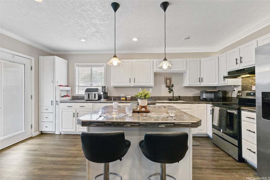 Next OPEN HOUSE will be on SUN 9/28 from 3-5 pm. Owner occupied so may not have many open houses. Great opportunity for a first time home buyer or those looking to downsize. Affordable single level home with a fourth bedroom or bonus room that can be used as a rental or in-law quarters because of its separate entrance, which may be good for multi-generational living. The kitchen was remodeled in 2023 to a contemporary look. It also has a nice sized pantry closet for additional storage, though you already have plenty of room for your kitchen items in the multiple cabinets. Island in the kitchen takes away the need for a dining room table. Windows were upgraded to double paned. Yard is mostly cement for minimum maintenance. Location is down a private driveway flag lot. Enjoy not having any maintenance or association fees! Nestled between the majestic Waianae Mountain Range and the sparkling Pacific Ocean. Living in Makaha means embracing a more rural lifestyle, with breathtaking views and a laid-back atmosphere that invites you to slow down and enjoy the simple pleasures of island life. Schedule your private showing today for this great home with versatile floor plan! Sold as-is.
