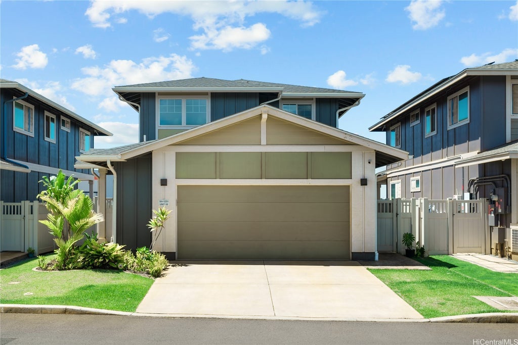 Welcome Home to Koa Ridge! Built in 2023, this practically new 3-bedroom 2 1/2-bath Single Family Home has been highly upgraded. Linden Point Bianco porcelain tile flooring runs throughout the first level of the home and luxury vinyl planks were used on the stairs and entire 2nd floor. The kitchen is a showstopper with upgrades that include quartz countertops, an extra large sink and upgraded faucet, Fisher & Paykel stainless steel appliances, designer cabinets, and functional features that include a built-in desk, and eat-on island that seats 3-4. All of the bathrooms have upgraded cabinets and include the electrical components necessary for washlet toilets. The bedrooms have been upgraded with closet systems and split a/c. The fully fenced backyard has been professionally landscaped and includes a sprinkler system, stamped concrete extended lanai, an extra storage closet off the lanai, and lots of room on all sides of the house to grow & play! This home comes with the modern comforts of EV chargers, security cameras, keyless entry, and a solar water heater. Centrally located near shopping, dining, military bases, freeway on and off ramps, parks, and more!