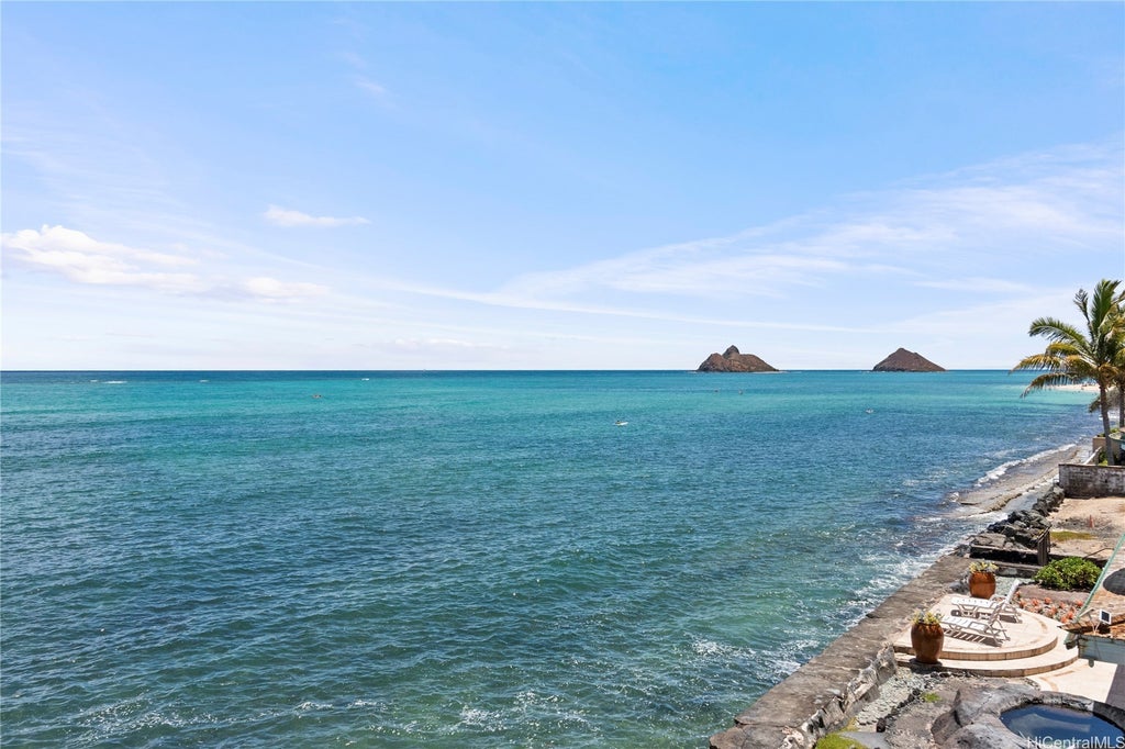 Absolutely breathtaking ocean views from this iconic Lanikai ocean cottage! Minutes walk to world famous Kailua Beach and Lanikai beach. Cathedral ceilings welcome you to spectacular ocean and Mokulua views. Step out to wrap around lanai and level yard and watch boaters kayaking, paddling and just enjoying the ocean. Each floor creates ideal separate living spaces with ocean views from every level. A simply stunning getaway in Hawaii.