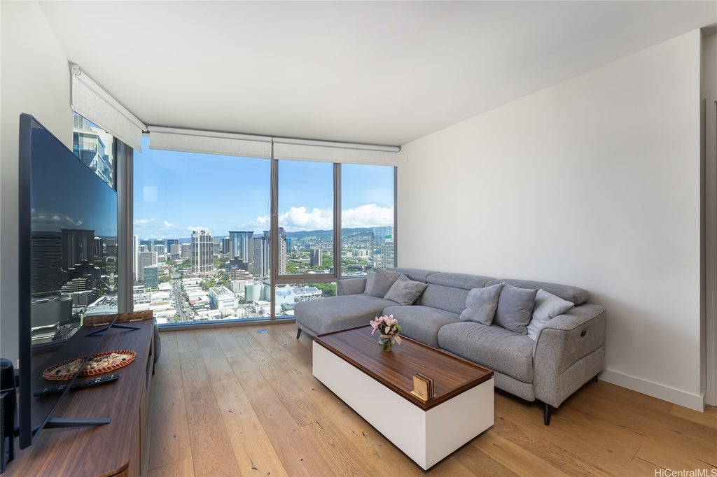 Enjoy this beautiful 2 bed 2 bath corner unit with 2 parking located on the 33rd floor of Ae'o, an iconic building in the vibrant Ward Village with direct access to Whole Foods store. Residents experience world class amenities, including a rooftop sky deck, resort style pools, private dining rooms, a fitness center, guest suites. With its prime location near Ala Moana Beach, shopping, dining and movie theater, Ae'o has everything you need to live in paradise. This building is pets friendly. Schedule your showing today!