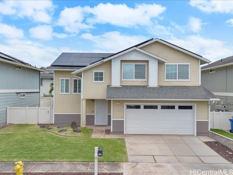 IMMACULATE TURNKEY HOME + VA ASSUMABLE LOAN AT 2.75% + OWNED PV SYSTEM + LOW MONTHLY FEES TO TOP IT ALL OFF!!!. Welcome to 91-307 Hoomalule Place-an elegantly renovated turn-key home where style meets comfort. Soaring high ceilings and abundant natural light create an open, airy feel, while new flooring throughout adds warmth and continuity. The chef’s kitchen is a showpiece, featuring a waterfall island, generous counter space including dedicated coffee bar and custom cabinetry—perfect for both everyday cooking and entertaining. Step outside to a spacious, covered lanai & beautifully maintained yard. A truly inviting space to relax, entertain, or simply enjoy the island breeze. Energy efficiency is built in with an owned PV system featuring 37 panels and 2 batteries, keeping electric bills low. The split AC in the garage adds versatility, making it ideal for a workshop, gym, or hobby space. Rare 2.75%, VA assumable loan @ $4,411 PITI—an incredible opportunity in today’s market. Pair that with the super low $50 HOA and $0 maintenance fees. As a bonus, this home has lots of little easter eggs hidden throughout; little touches that elevate the quality of this home to the next level.
