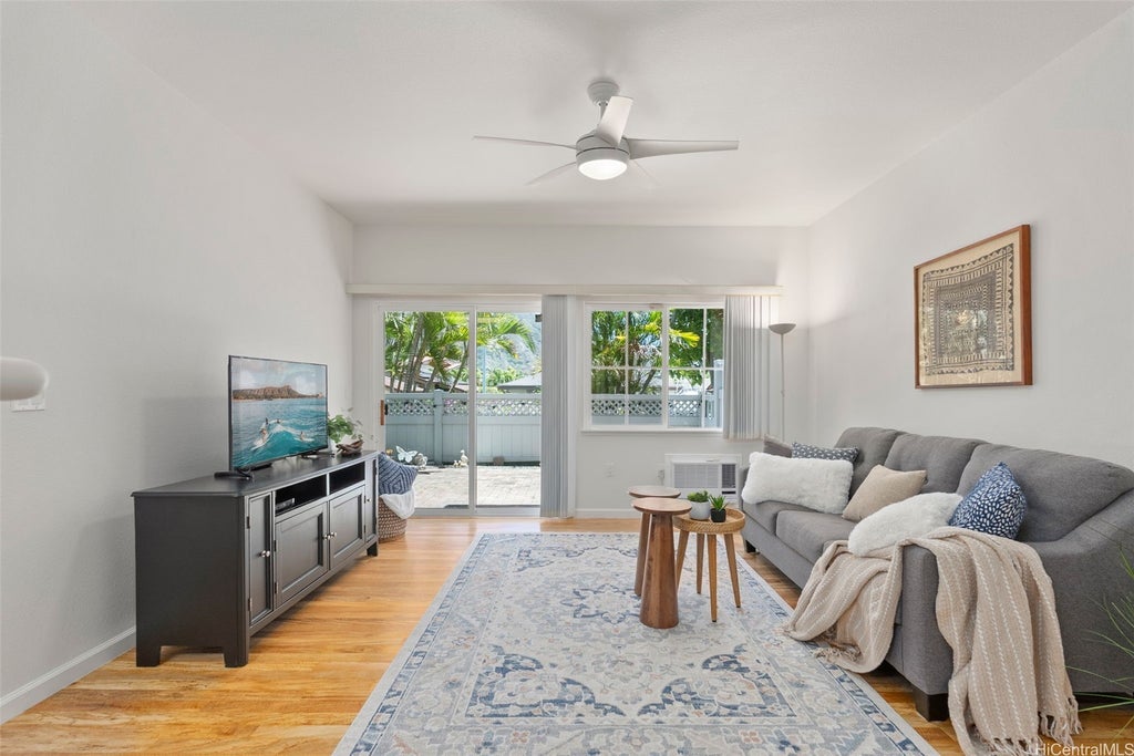 Welcome to this desirable 2-bedroom, 2-bath single-level townhouse in the sought-after Lalea at Hawaii Kai community with incredibly low maintenance fees. This unique unit features a rare, extra-large lanai that spans the length of the home, offering stunning views of Koko Crater. Perfect for indoor-outdoor living! The home boasts an attached one-car garage plus an additional parking stall directly in front. Inside, you’ll find an open floor plan with gorgeous mango wood flooring, newer appliances, plantation shutters, and new ceiling fans in the living area. Each room is equipped with air conditioning for year-round comfort. Enjoy the fabulous amenities Lalea has to offer, including a sparkling pool, clubhouse, gazebo, and grassy BBQ areas. The community is pet-friendly and conveniently located near Hawaii Kai Town Center with shopping & waterfront dining! A wonderful opportunity to own a move-in ready home in one of East Honolulu’s most desirable neighborhoods.