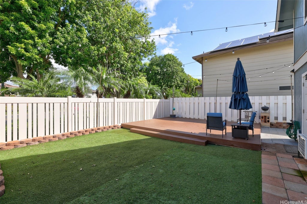 Accross from Holomua Elementary school, this beautiful 3 bedroom, 2 full bath home is located in the community known as Alii Cove by Ewa by Gentry. Home has a large backyard with a TREX deck and turf installed 2022 ready for you to enjoy. New roof installed in 2024 with a 7-year workmanship warranty. Conveniently located near shops, restaurants, banks, dog park, public park, gas station, bus stops, golf course, and much more!!!!